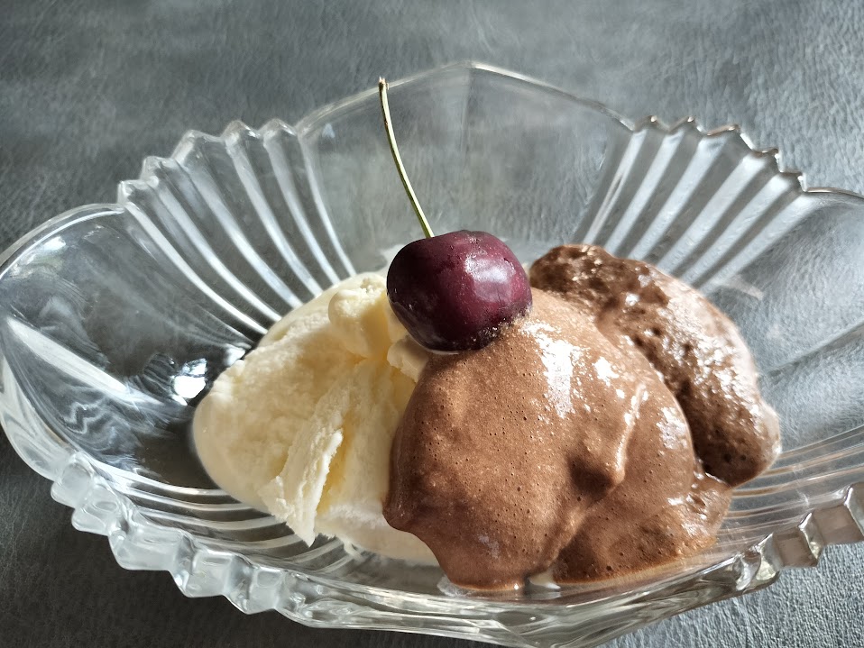 アイスクリームに添えてみたが、冷蔵庫があまり冷えていないのかもね